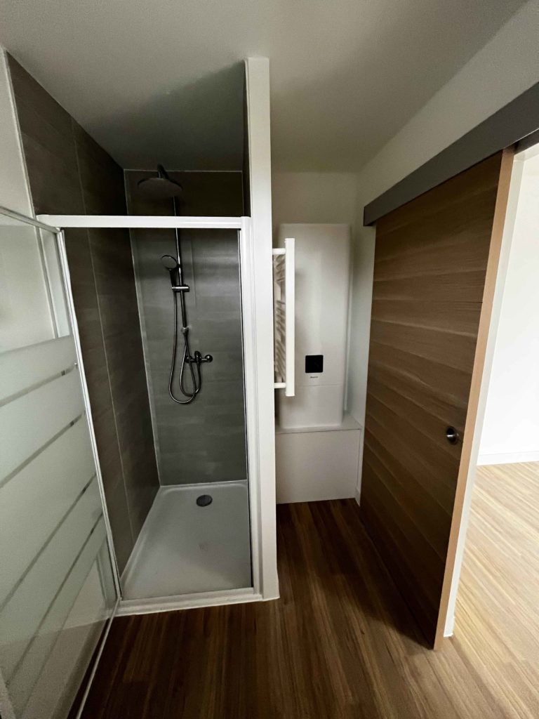 Située en banlieue Brestoise, cette extension de maison traditionnelle est utilisée comme une chambre supplémentaire de plein pied avec salle d’eau privative.